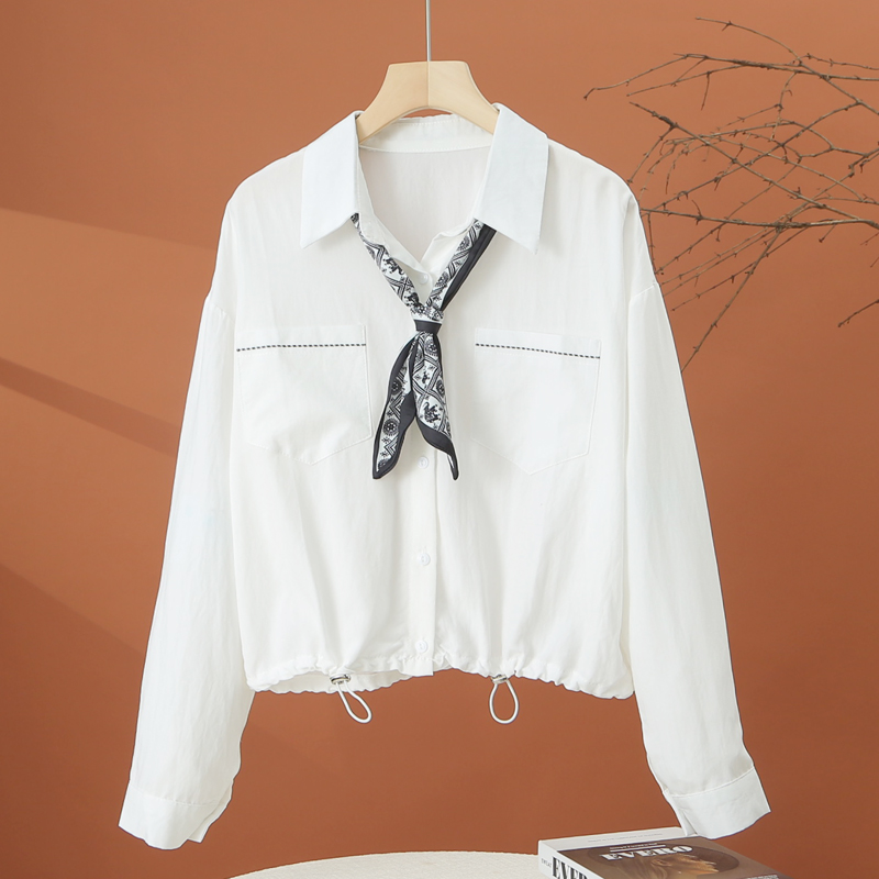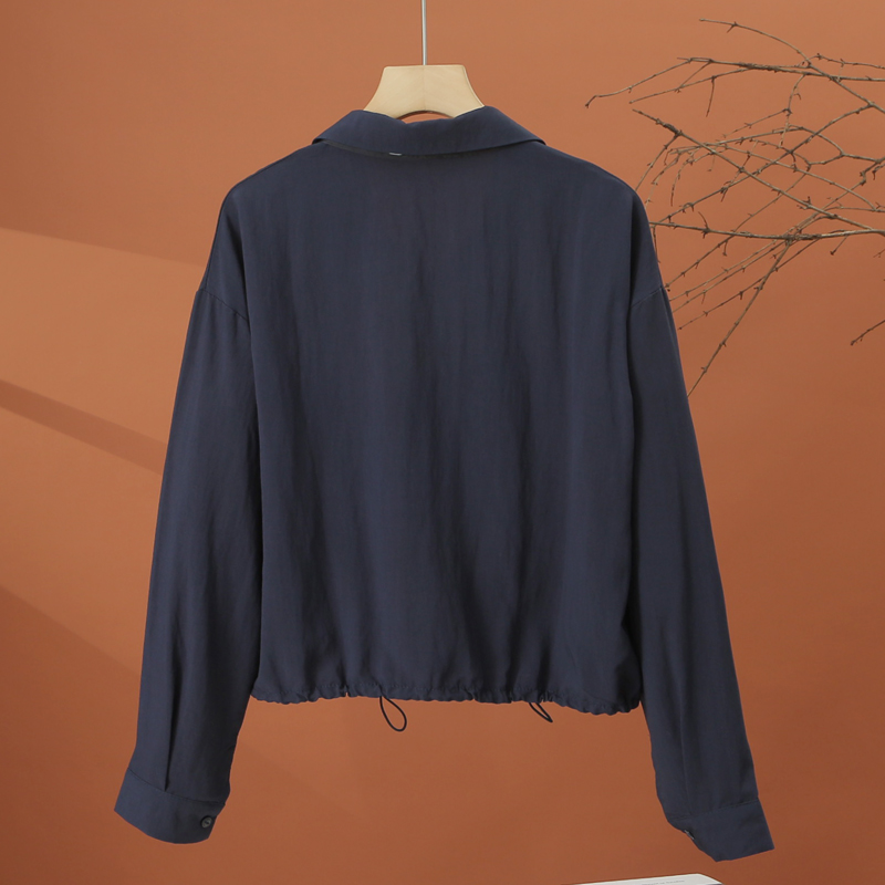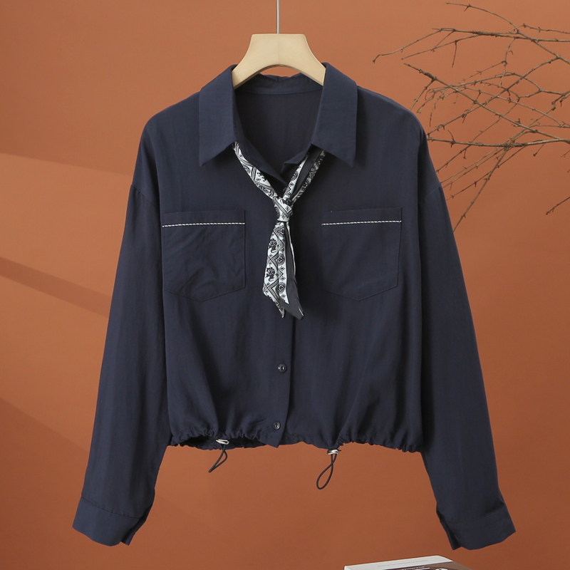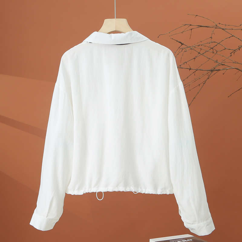 小个子长袖衬衫女早秋2025新款女装秋季时尚抽绳收腰女士短款上衣
