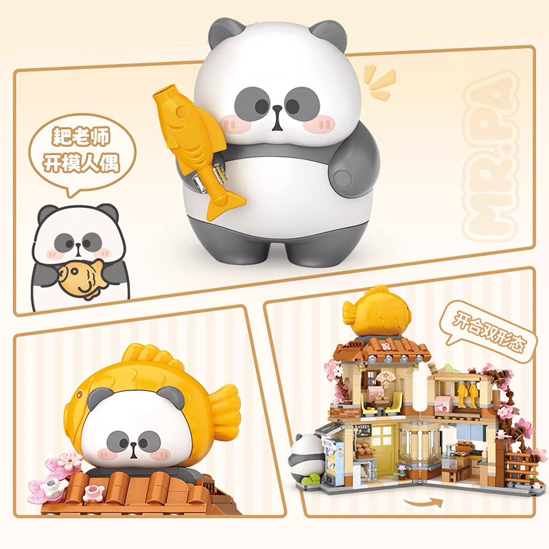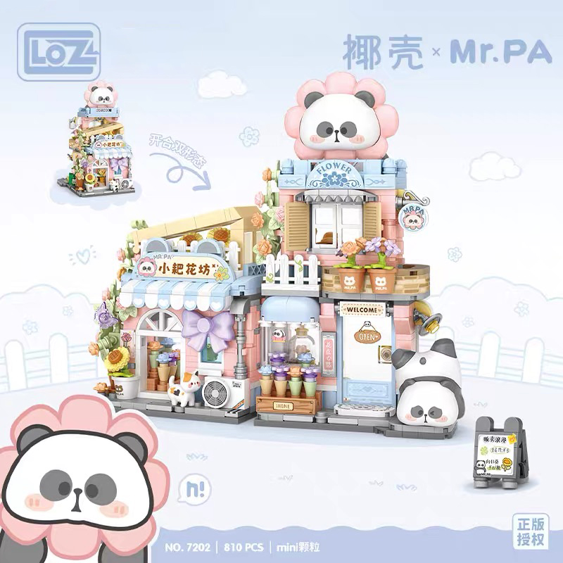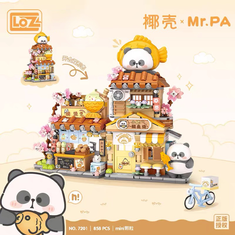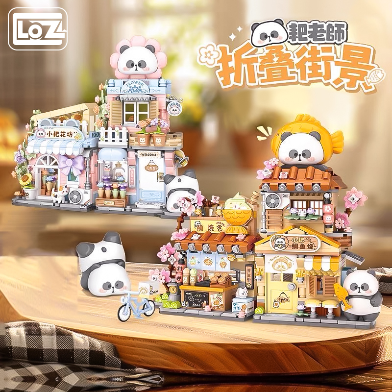 LOZ积木折叠街景小耙鲷鱼烧小熊猫房子花束熊猫花坊小颗粒拼装屋