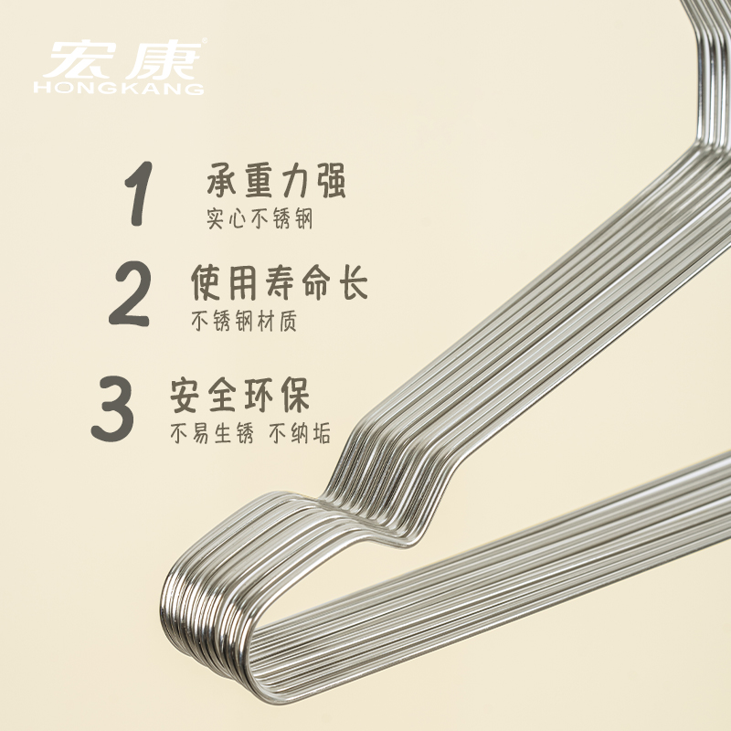 不锈钢衣架实心加粗家用挂衣服晾衣架子阳台晒衣撑子男士大号衣架