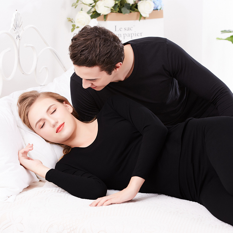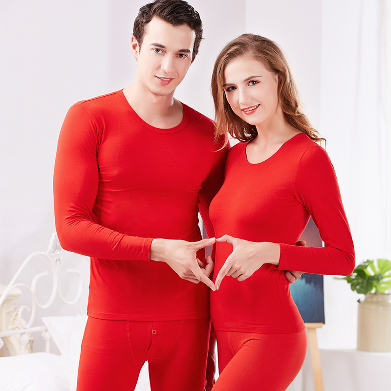苏格芬保暖衣男女情侣纯棉莱卡圆领纯色打底秋衣秋裤保暖内衣套装