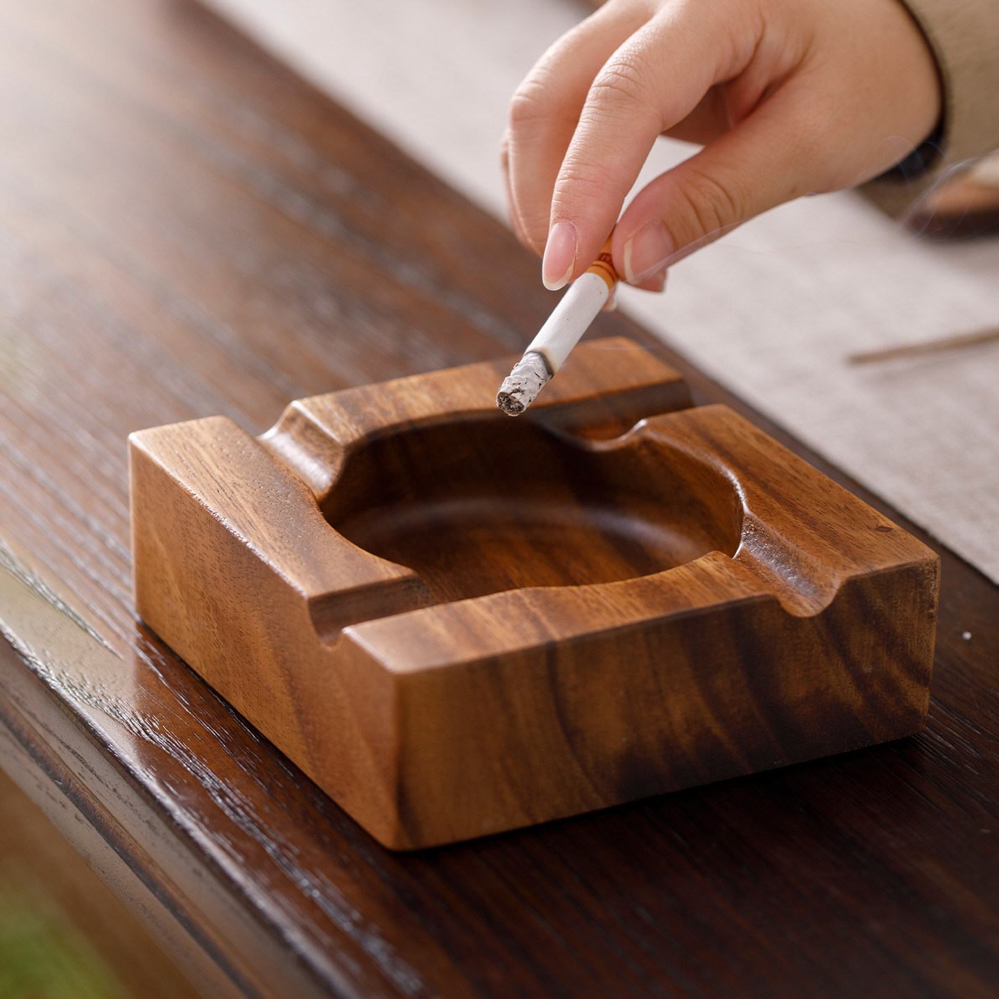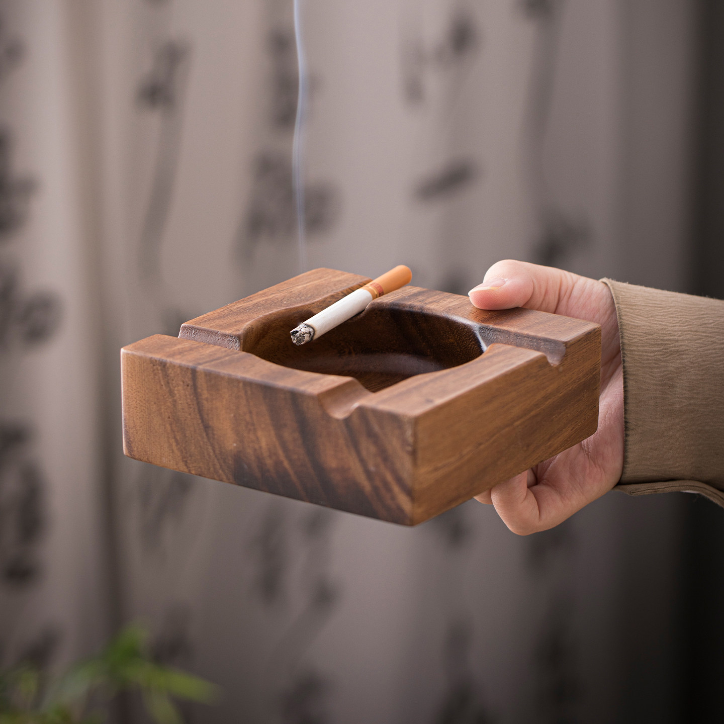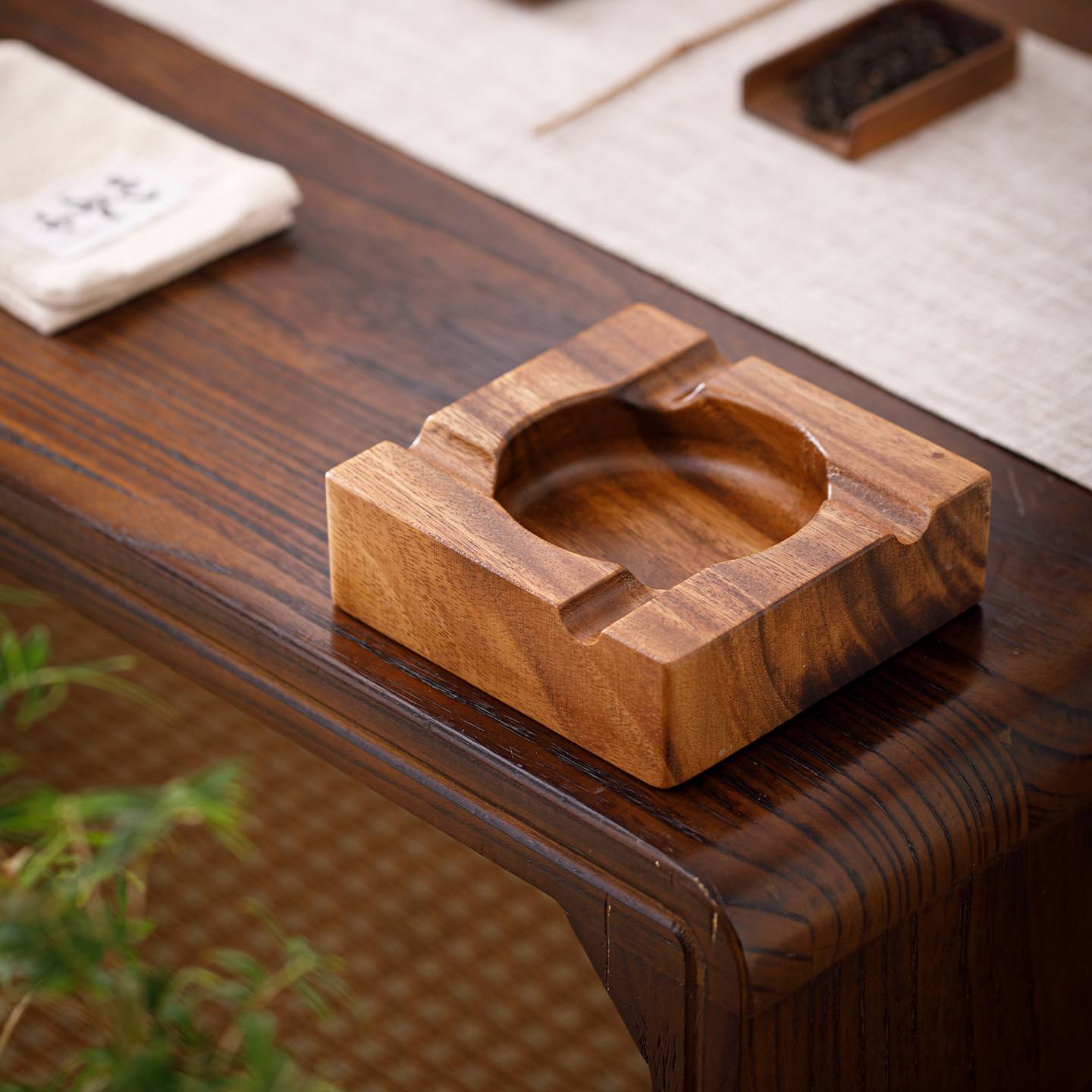 胡桃木实木雪茄烟灰缸创意个性酒店防摔家用客厅复古大槽定制烟缸