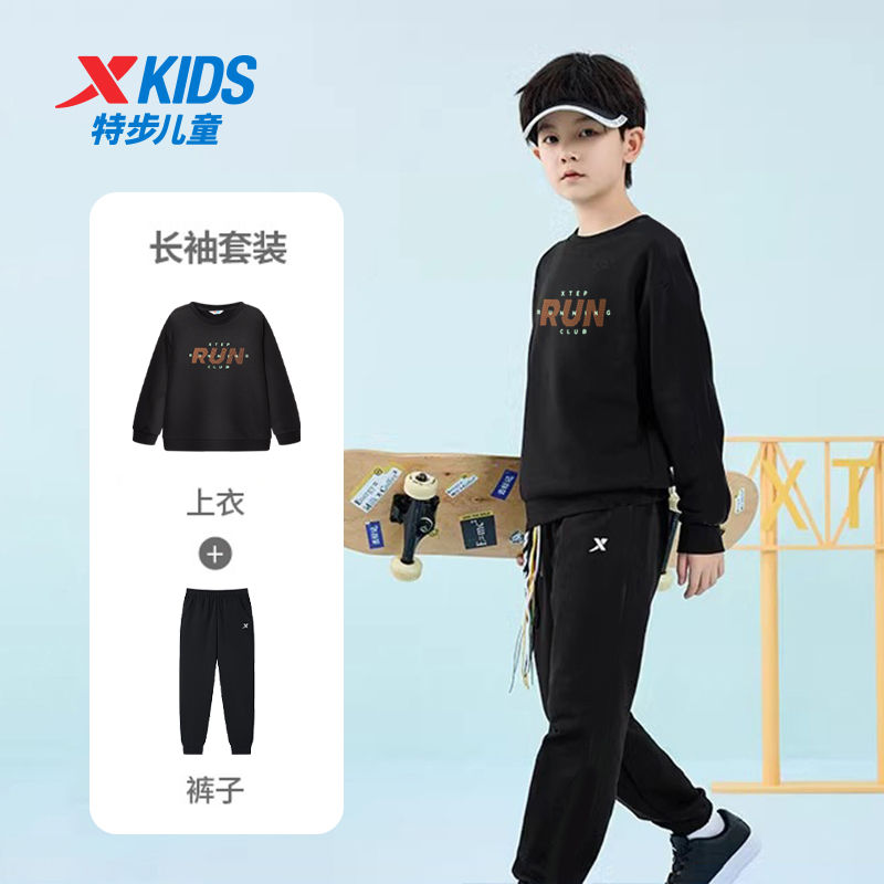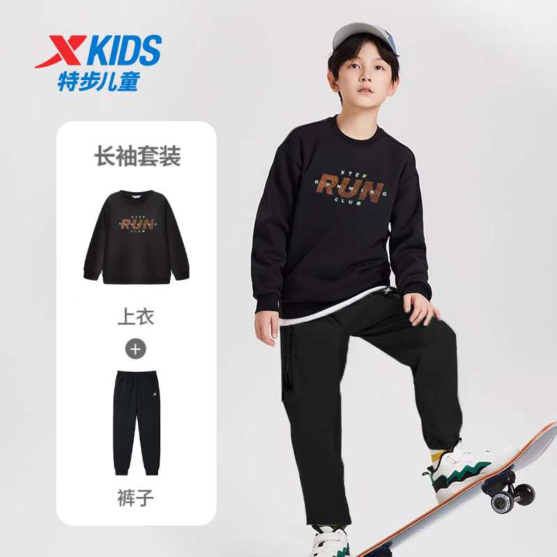 特步童装男童休闲套装2025秋冬新款儿童运动服大童卫衣长裤秋装男