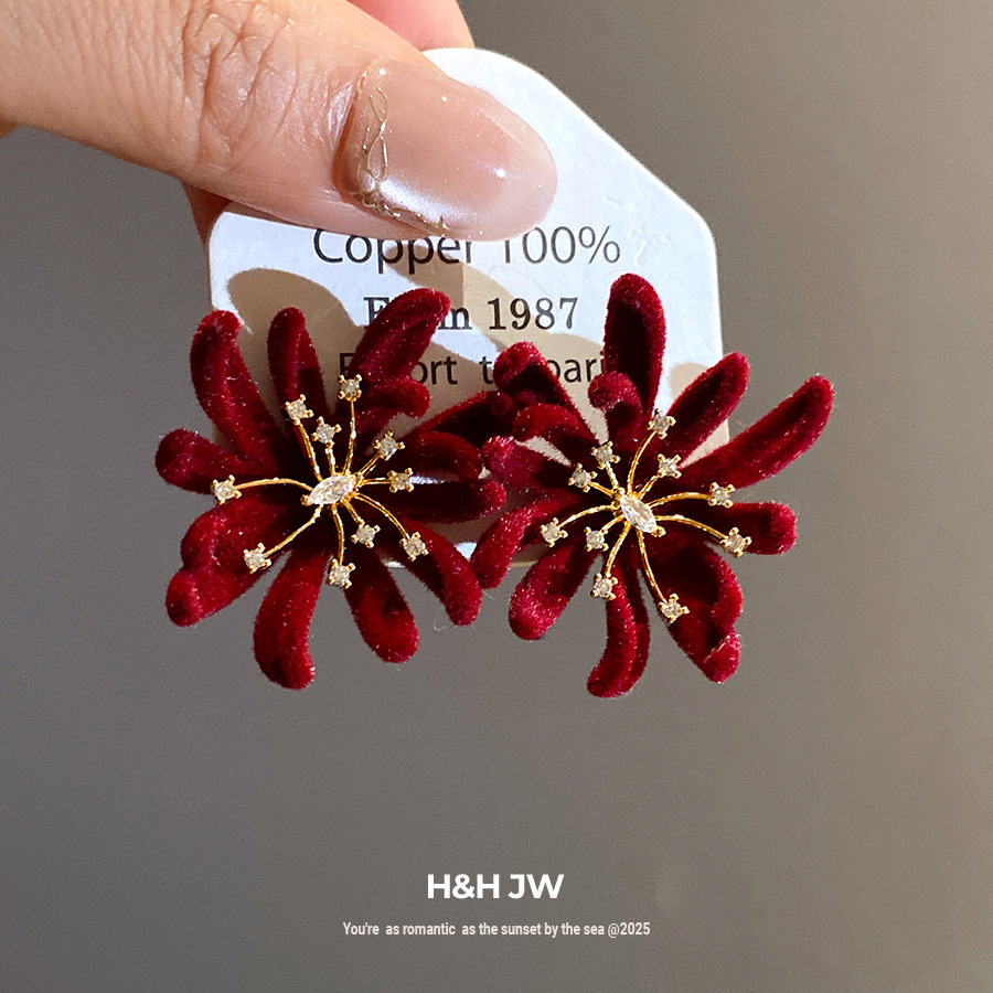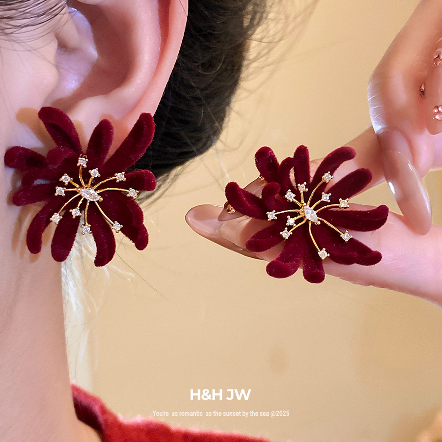 韩国东大门新款锆石花朵吊坠耳环轻奢高级感耳钉时尚气质耳饰秋冬