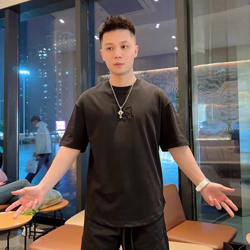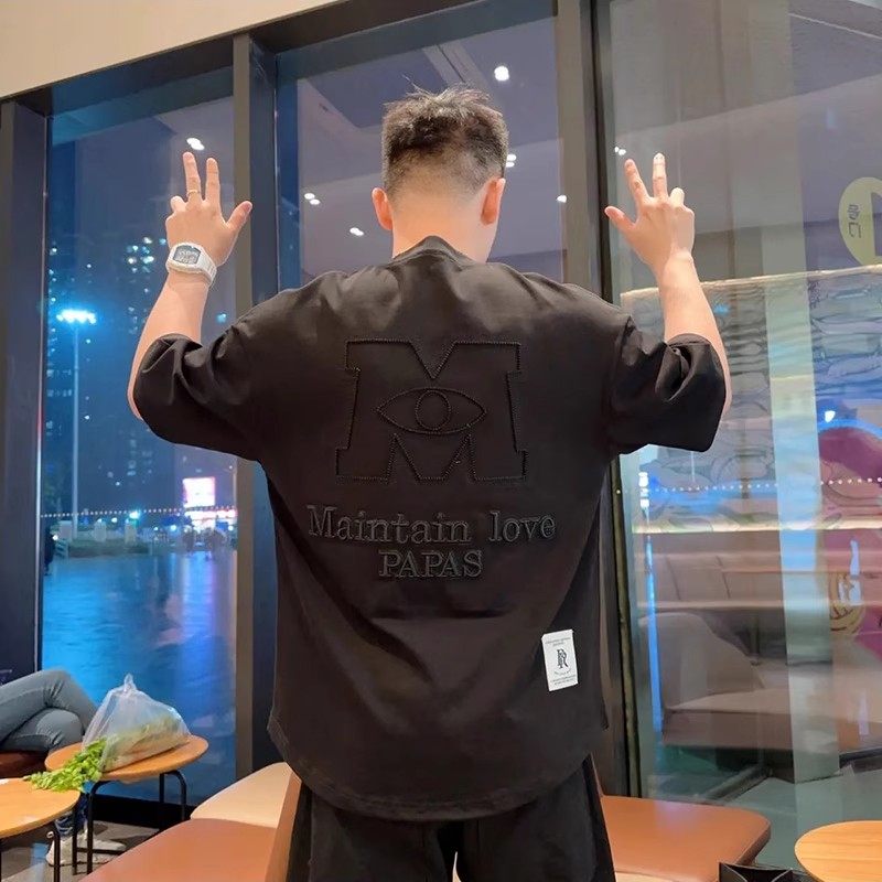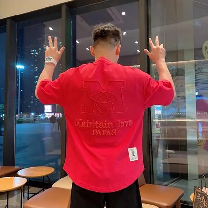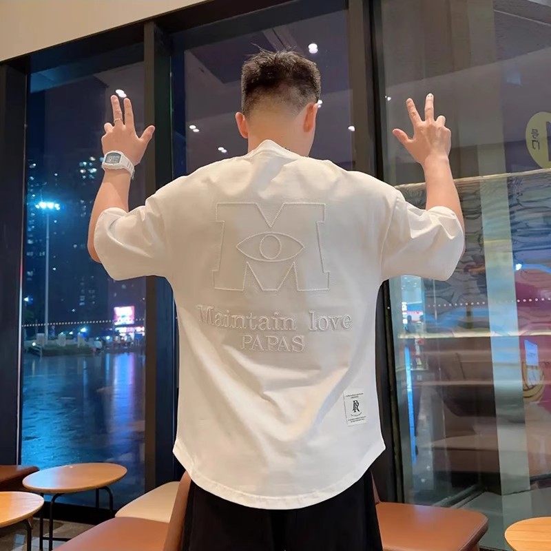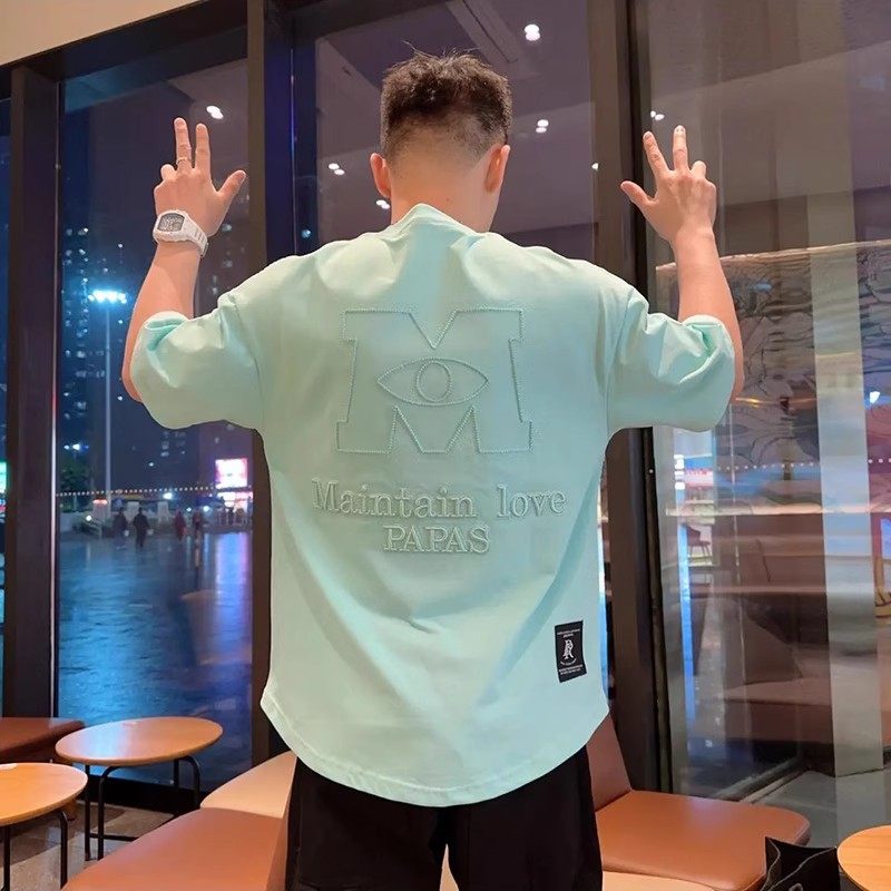 夏季新款潮流字母刺绣圆领短袖男士韩版百搭简约圆弧燕尾半袖T恤