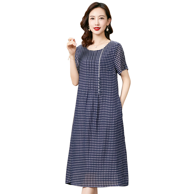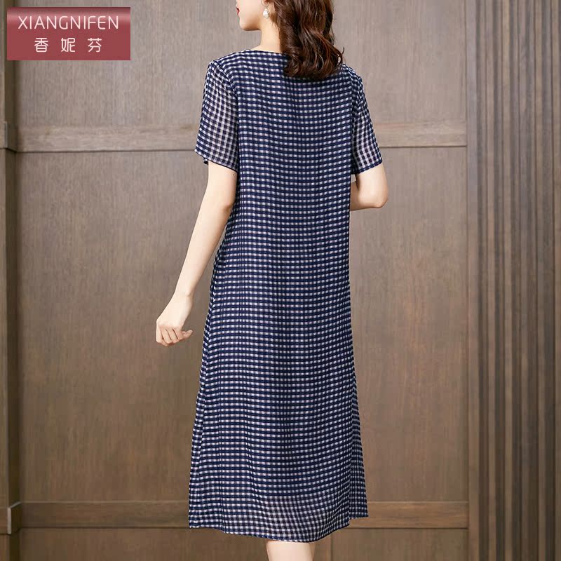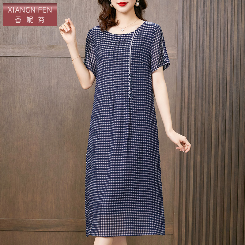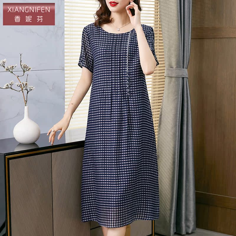 香妮芬高端条纹格子棉麻连衣裙夏文艺2022新款遮肚子显瘦大摆裙女
