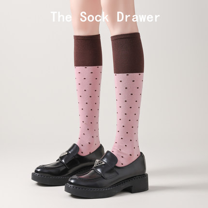 微压显瘦粉色小腿袜女春秋新款波点拼色长筒堆堆袜配小皮鞋的袜子