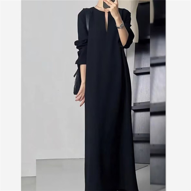 高级感时尚连衣裙女长袖春秋新款宽松中长款减龄遮肚直筒气质裙子