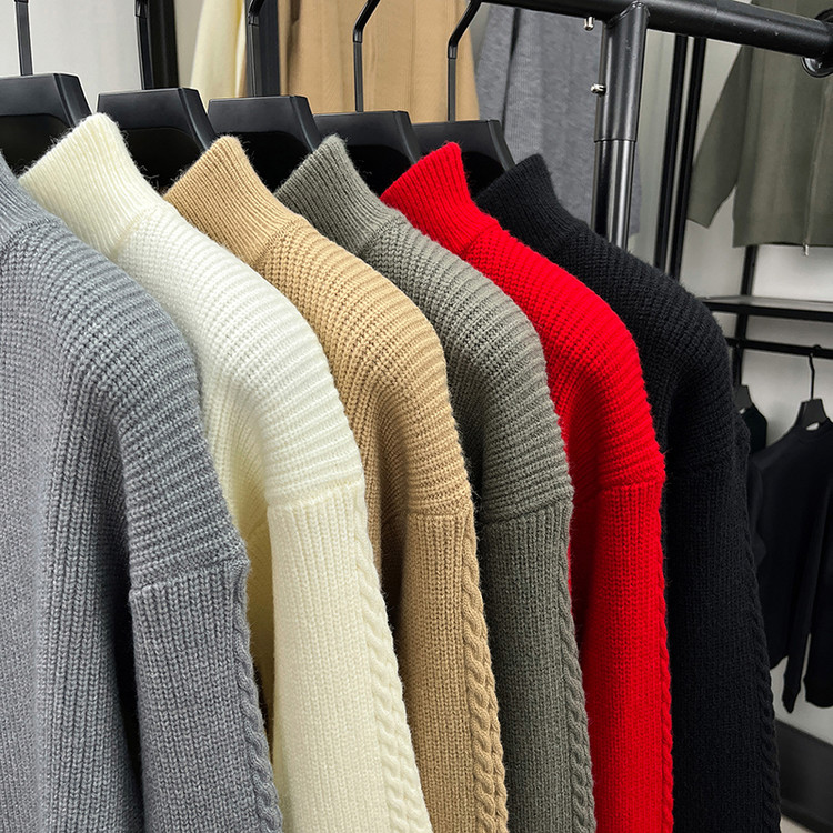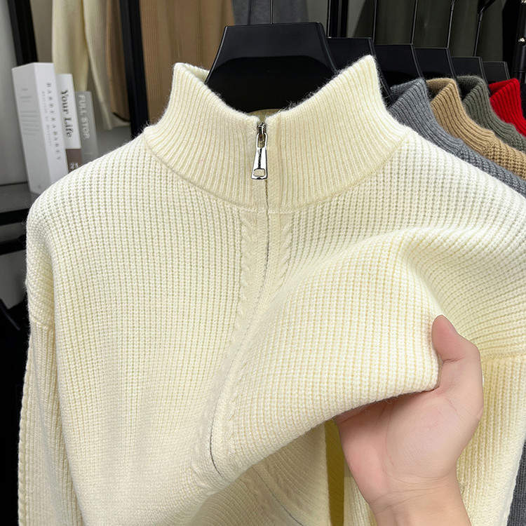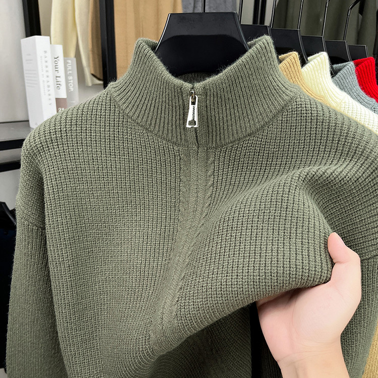 百搭纯色拉链开衫男针织衫秋冬季爆款修身毛衣外套男立领半高外搭