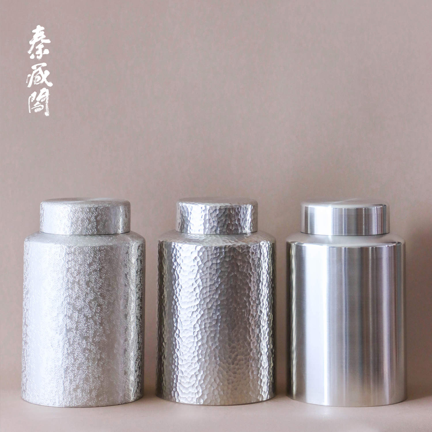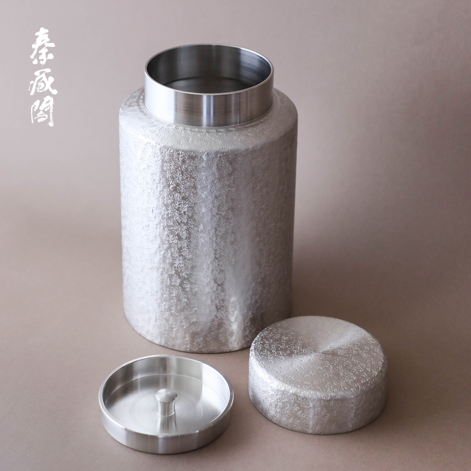 秦藏阁纯锡锤纹茶叶罐大号茶筒