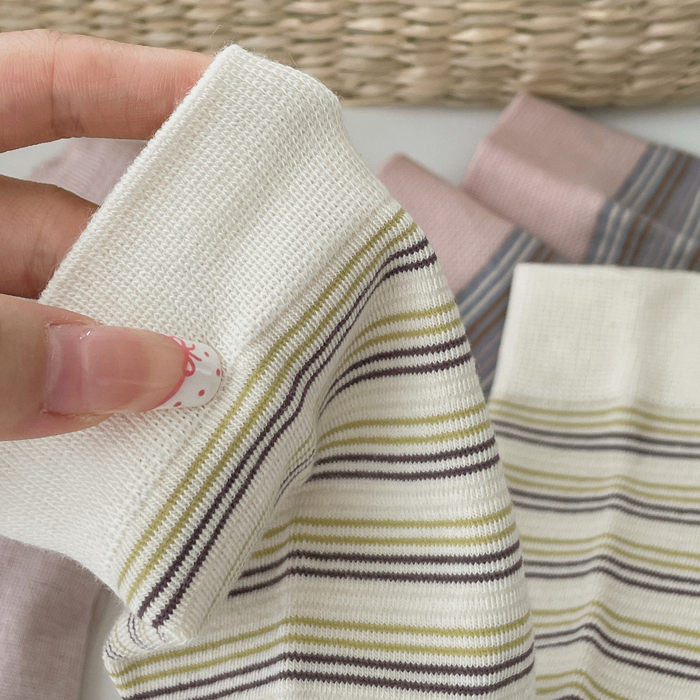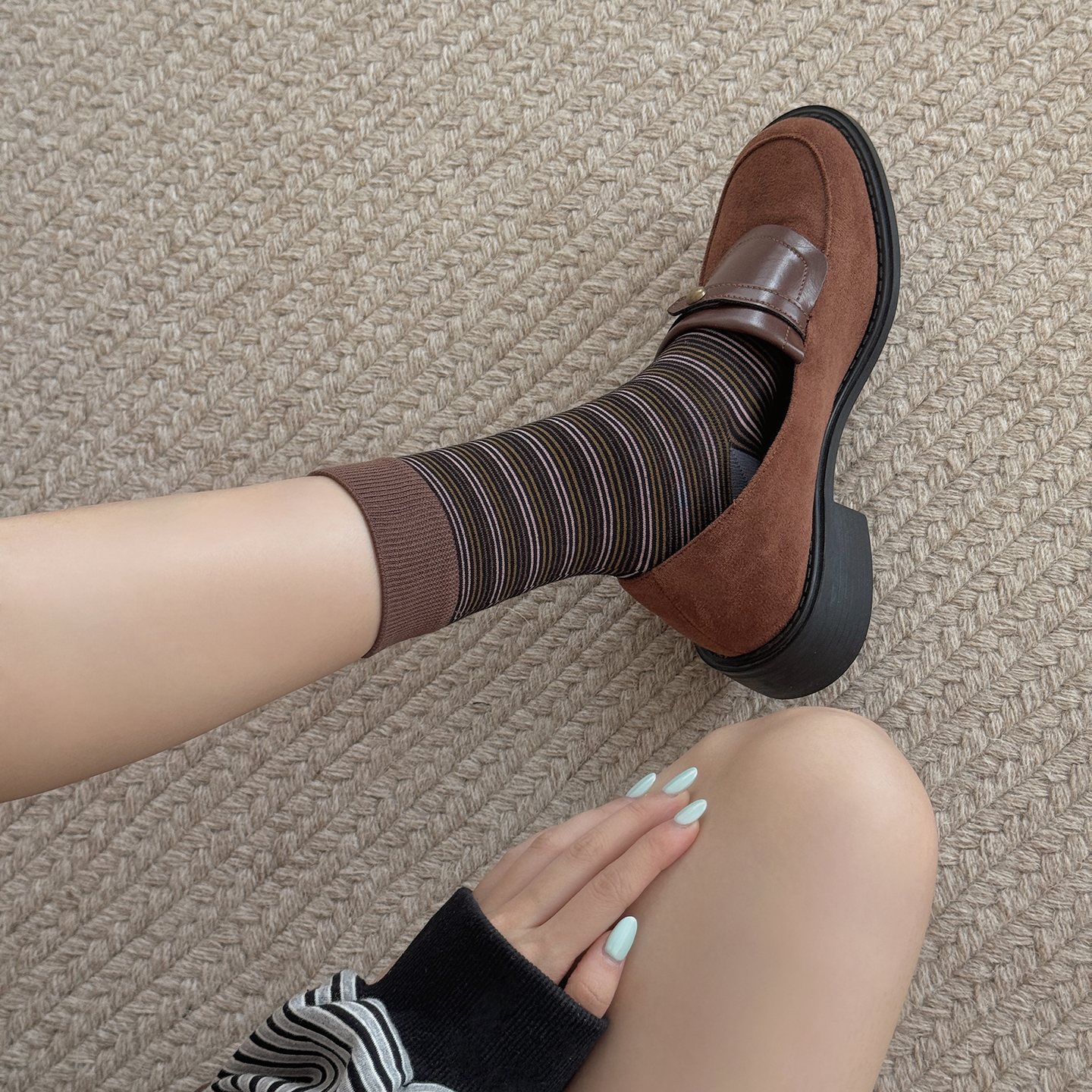 撞色条纹袜子女中筒袜ins潮春秋季日系复古纯棉无骨袜长筒堆堆袜