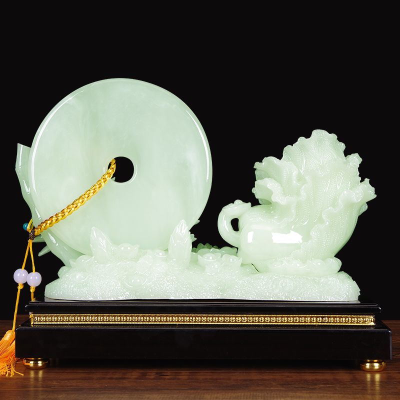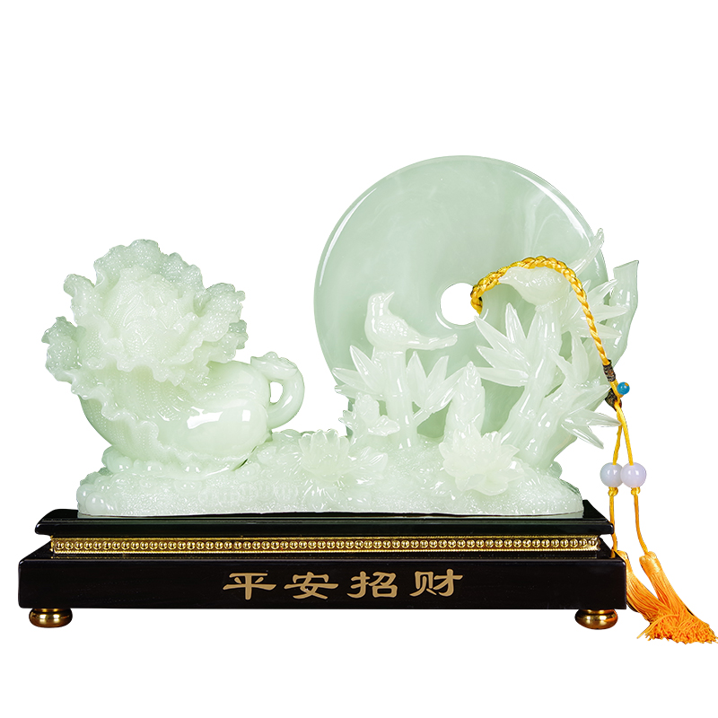 玉石平安扣招财白菜摆件家居客厅电视柜酒柜高端装饰品搬新家礼品