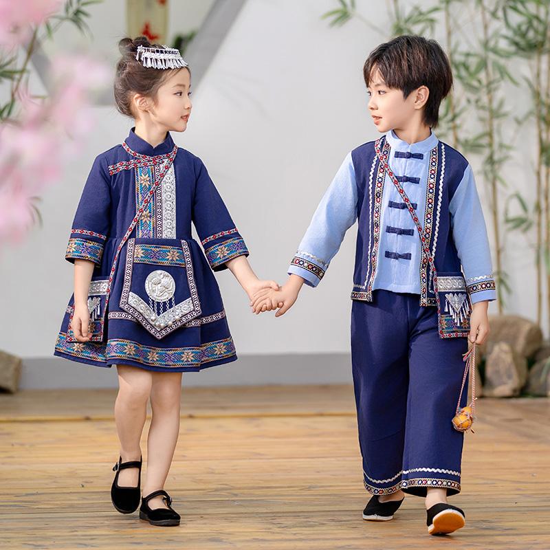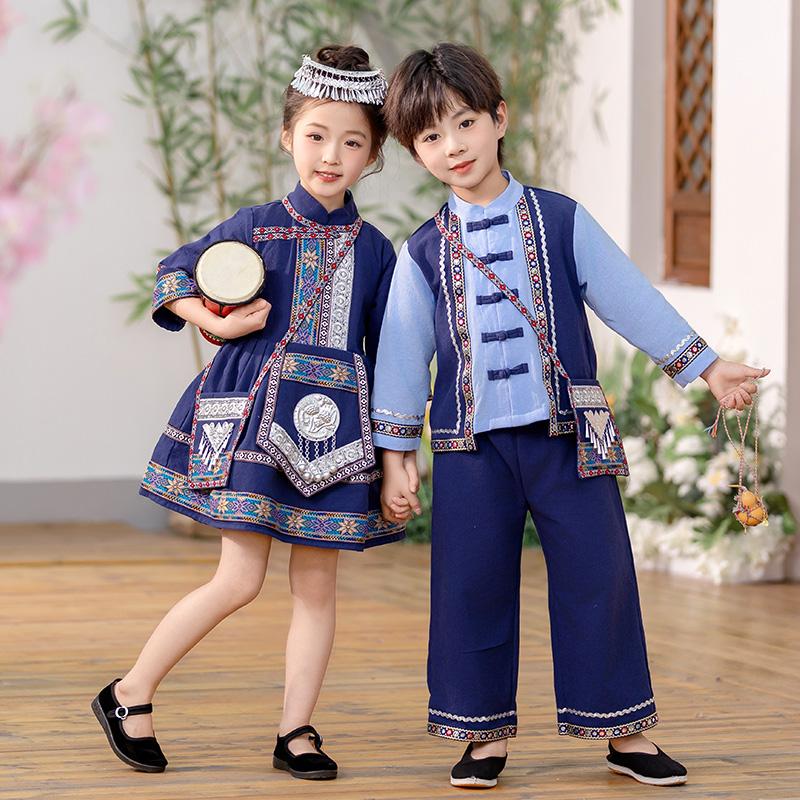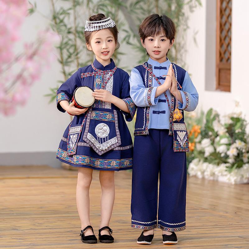 广西三月三儿童少数民族服装男女童壮族瑶族舞蹈服幼儿园表演服装