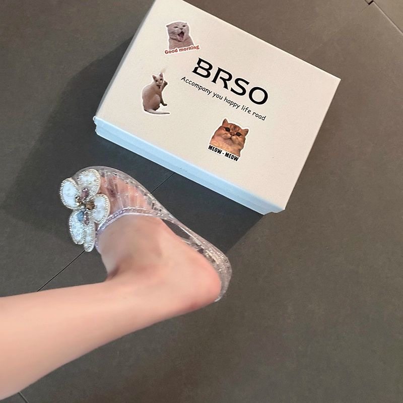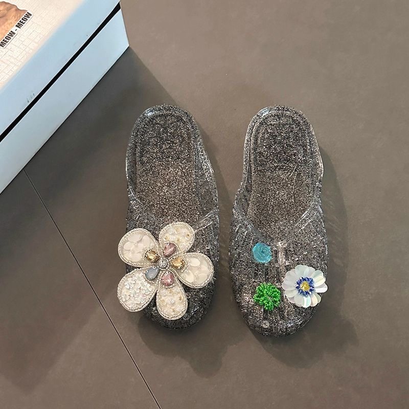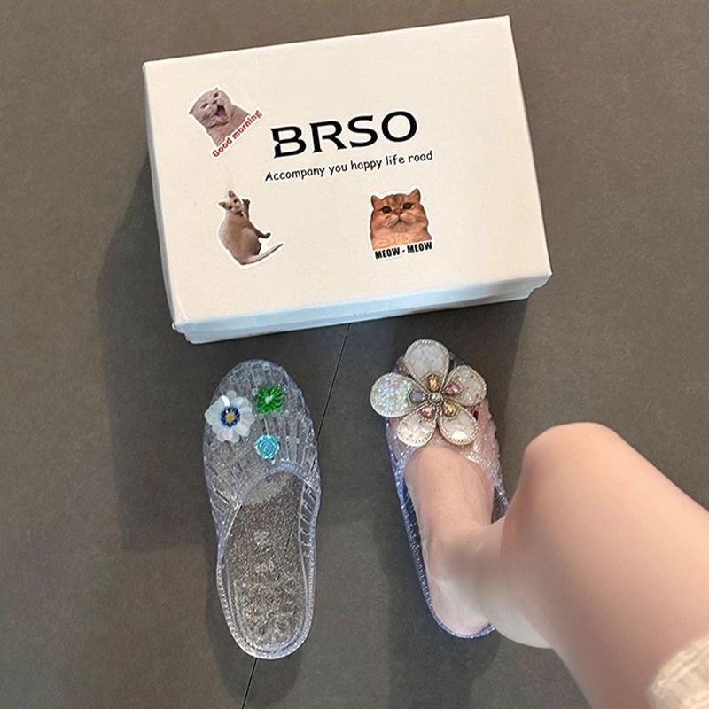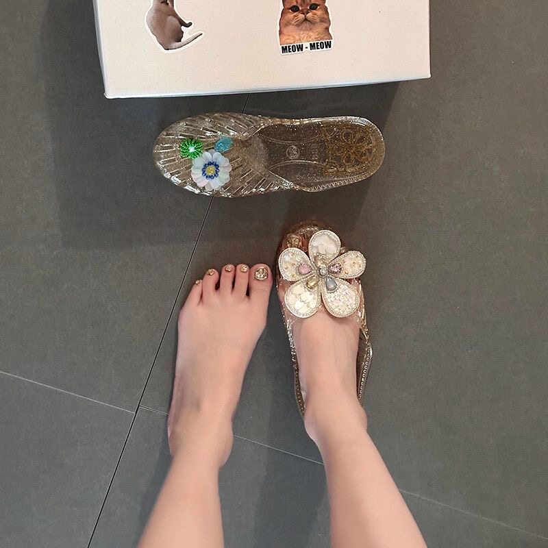 韩国水晶鞋凉鞋女平底透明半拖外穿鞋花果冻鞋凉拖鞋包头外穿女鞋