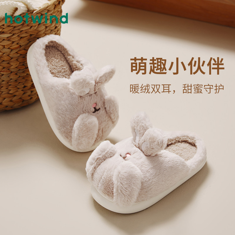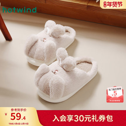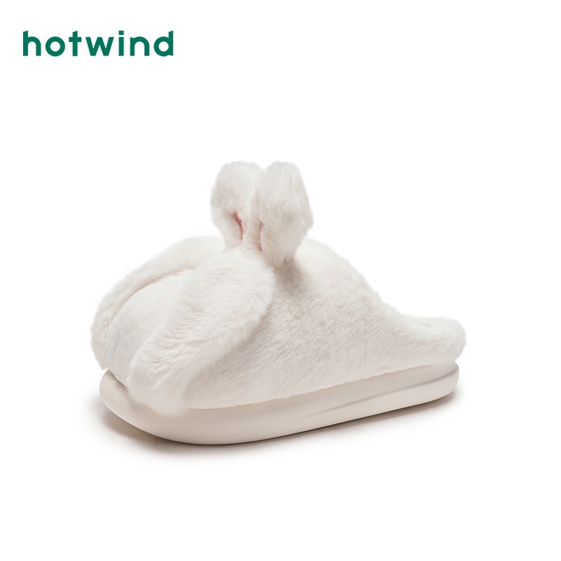 热风女鞋24冬新款女士休闲可爱兔耳家居拖保暖舒适卡通包头拖鞋