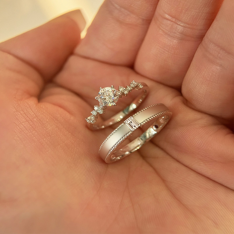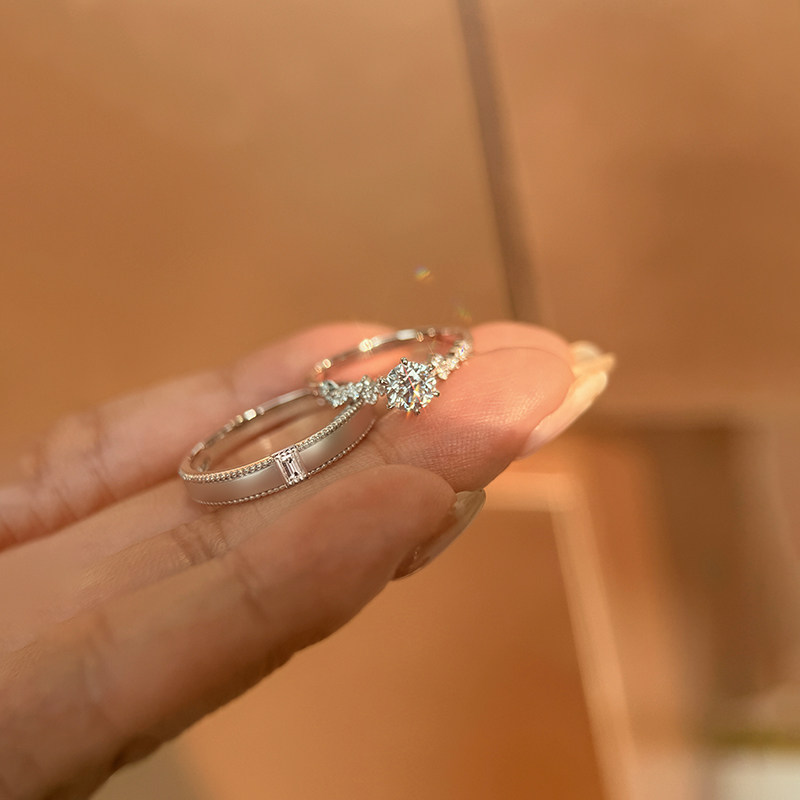 纯银莫桑钻戒指女星梦1克拉钻戒情侣对戒闭口戒求婚结婚生日礼物