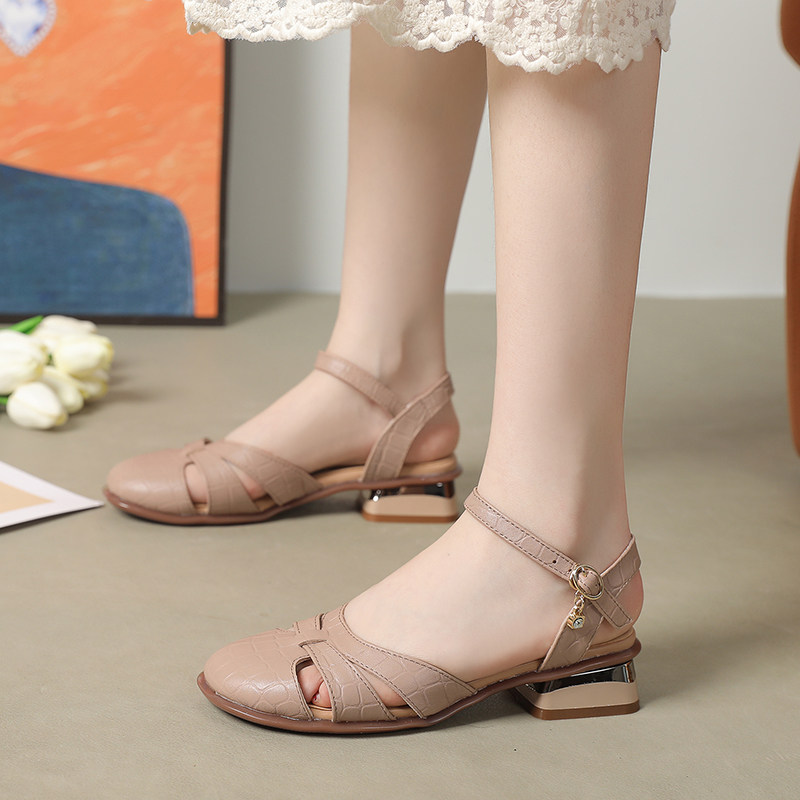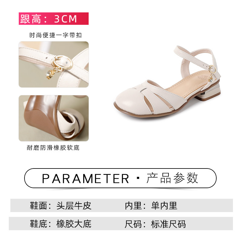 真皮一字扣包头凉鞋女夏季外穿皮鞋2025新款百搭软皮软底女鞋大码