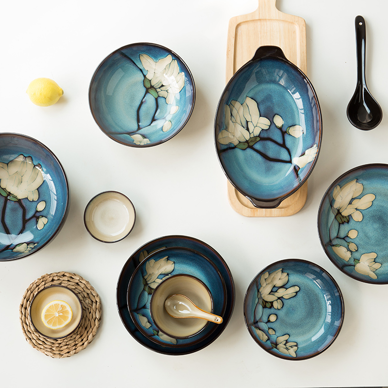 碗碟套装 家用日式加厚彩色可爱4/6人微波炉饭碗汤碗菜盘陶瓷餐具