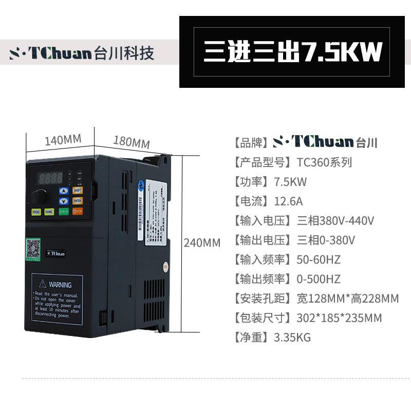 变频器三相380v风机电机调o速器0.75KW1.5千瓦2.245.57.522303755