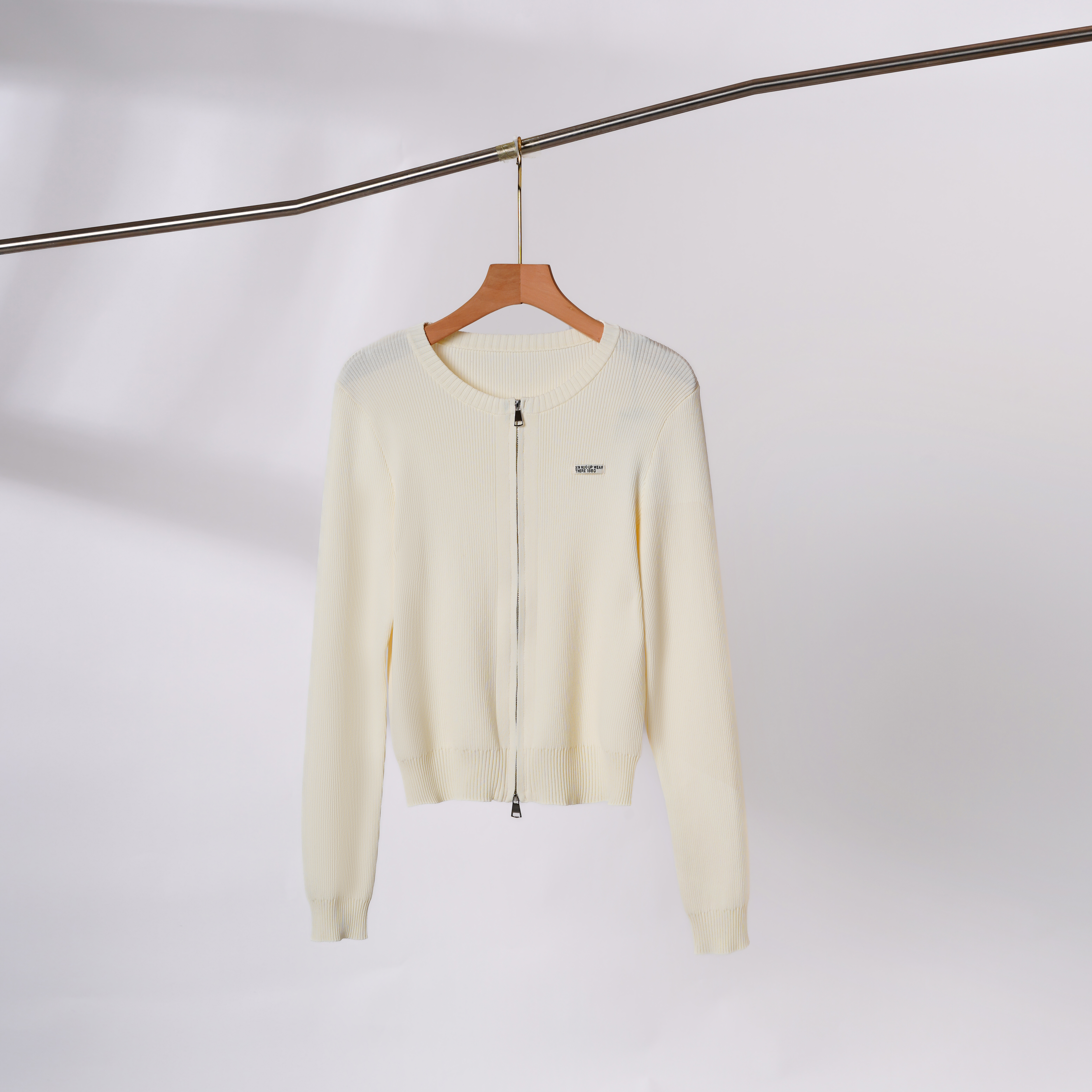 N669~【商场同步】25秋季简约时尚圆领双拉链修身显瘦针织开衫女