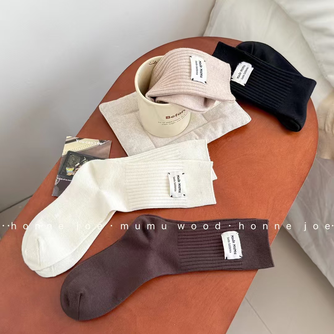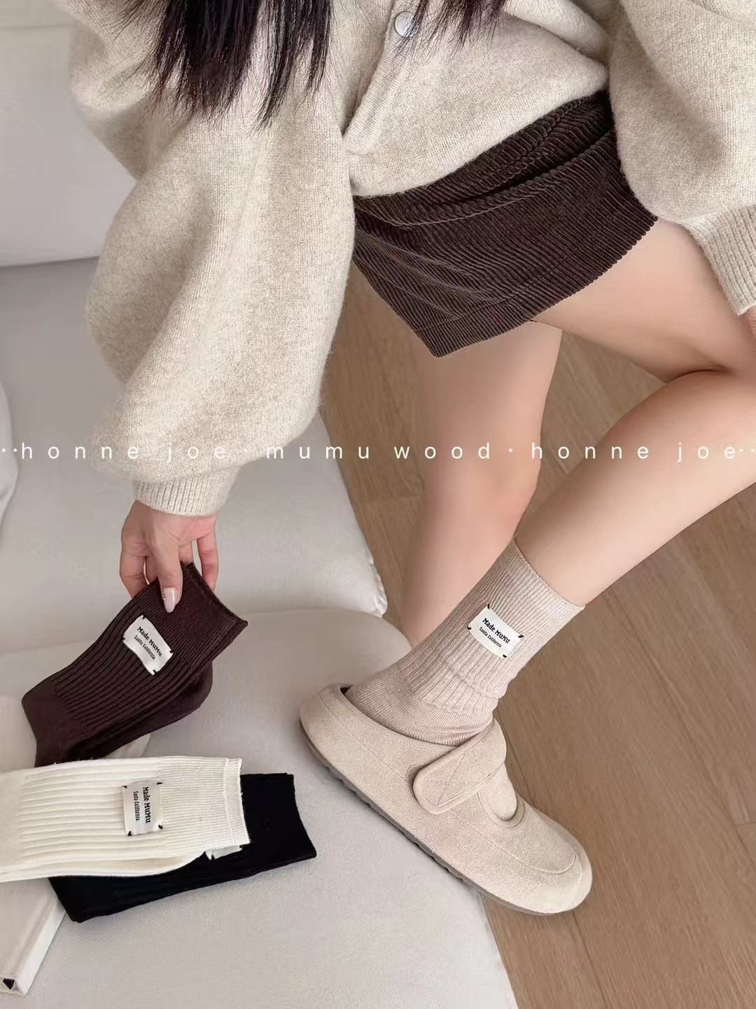 冬季布标堆堆袜女中筒袜秋款韩版咖色简约百搭女士保暖袜学生潮
