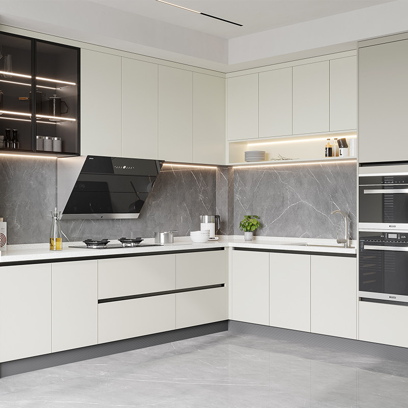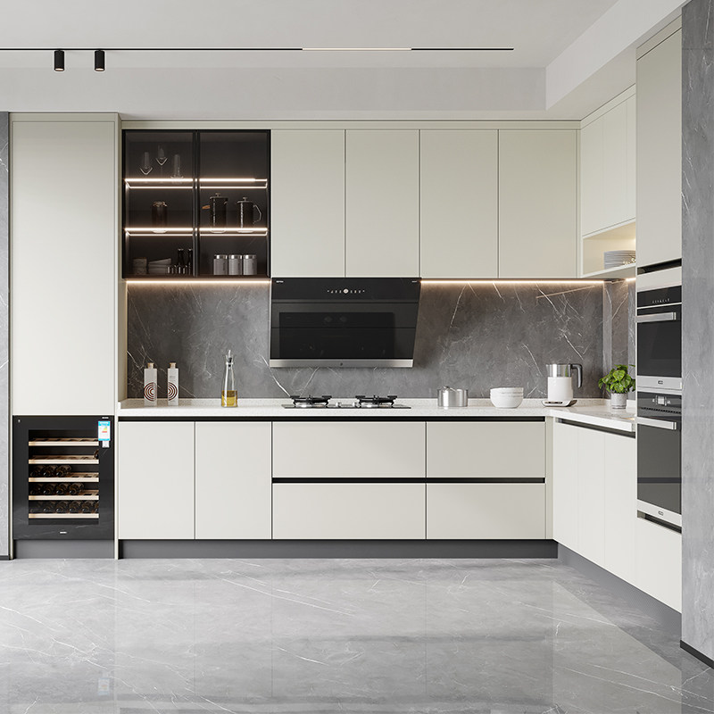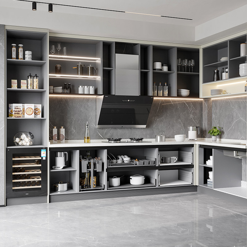 欧派定制厨房整体橱柜家用石英石台面一体灶台柜轻奢开放式厨柜