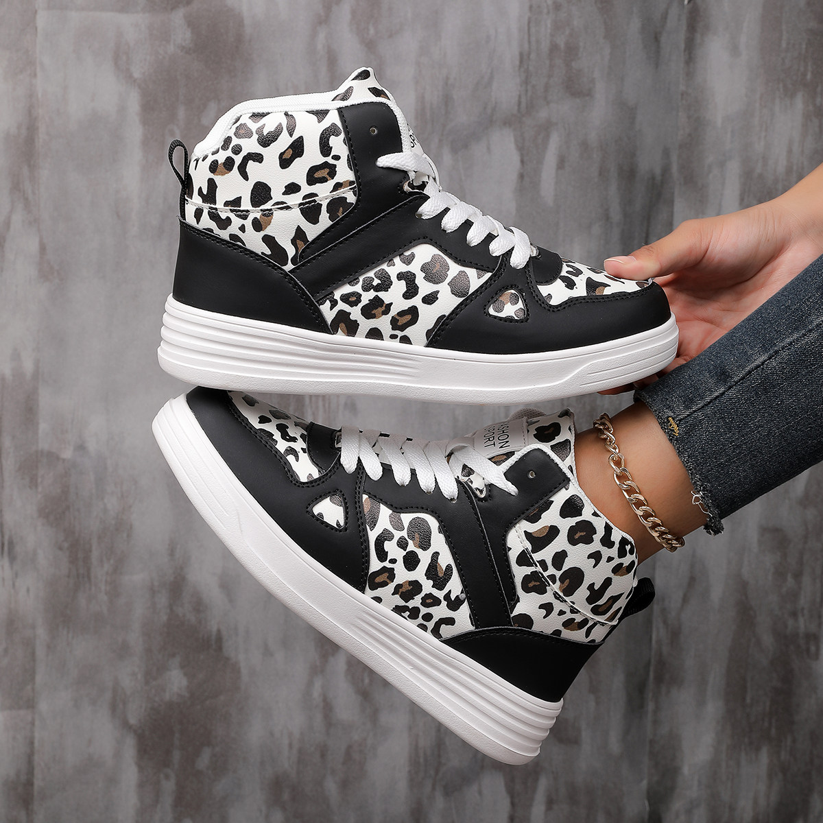 跨境大码女士皮面运动鞋气垫跑步鞋女防滑软底鞋旅游鞋