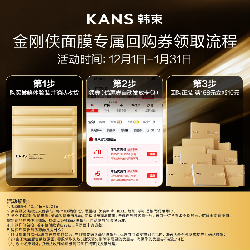 韩束第三代金刚侠面膜补水保湿黄金胶原炮舒缓修护提亮女大学生