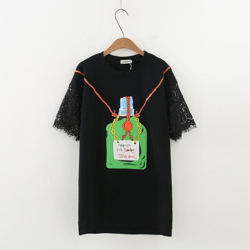 大码女装胖mm 显瘦黑色打底裙蕾丝拼接中长款连衣裙50136
