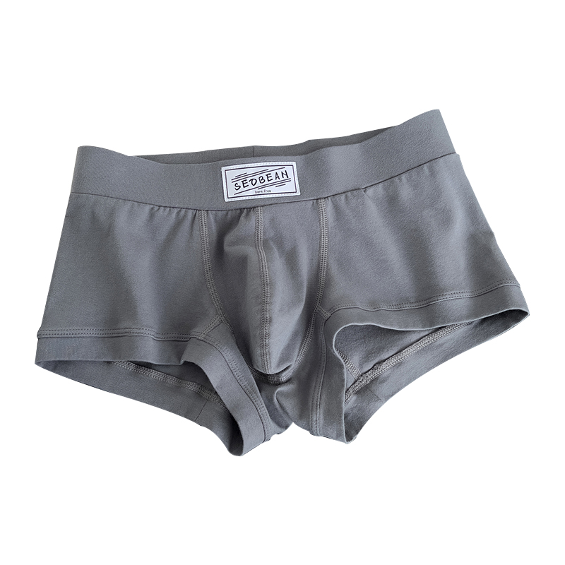 男士内裤纯棉平角透气U囊袋日系简约纯白色运动潮青年四角短裤头