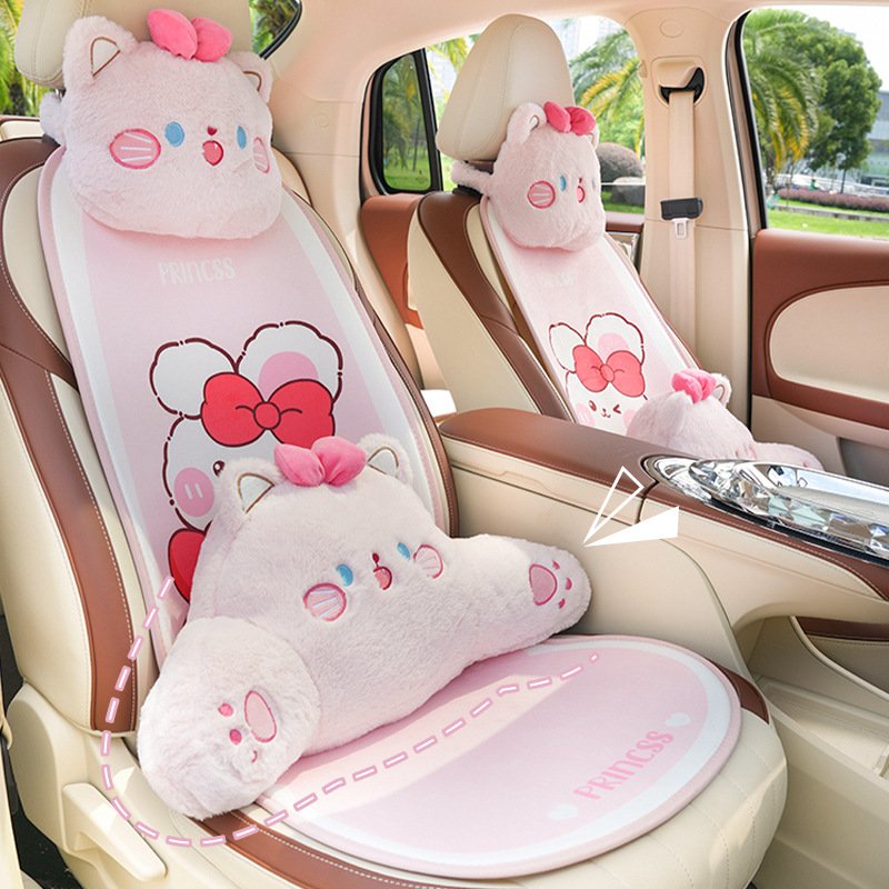 毛绒卡通汽车坐垫冬季高级感保暖舒适车用坐垫可爱熊兔车载座椅套