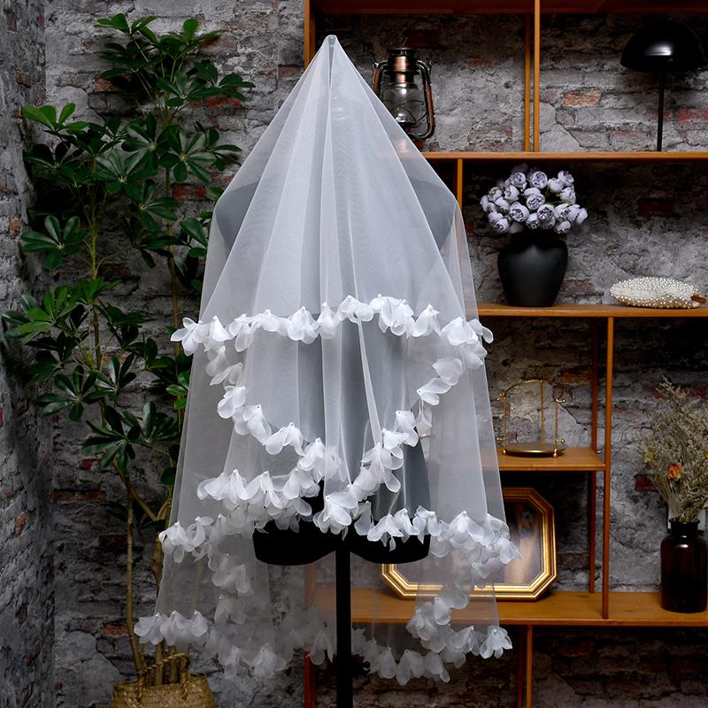 新娘结婚主婚纱头纱双层蕾丝蝴蝶结仙气头饰拍照道具森系超仙领证