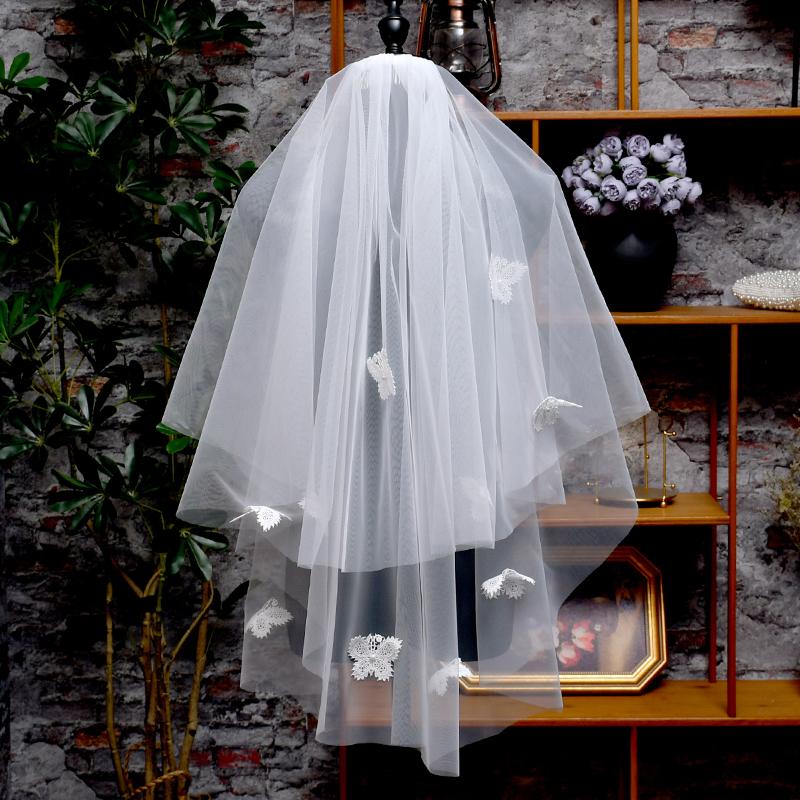 超仙蝴蝶结蕾丝新娘头纱衣纱夫人