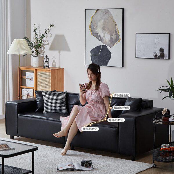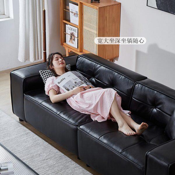 黑色复古沙发小户型吐司沙发意式皮艺极简奶油风双三人豆腐块沙发
