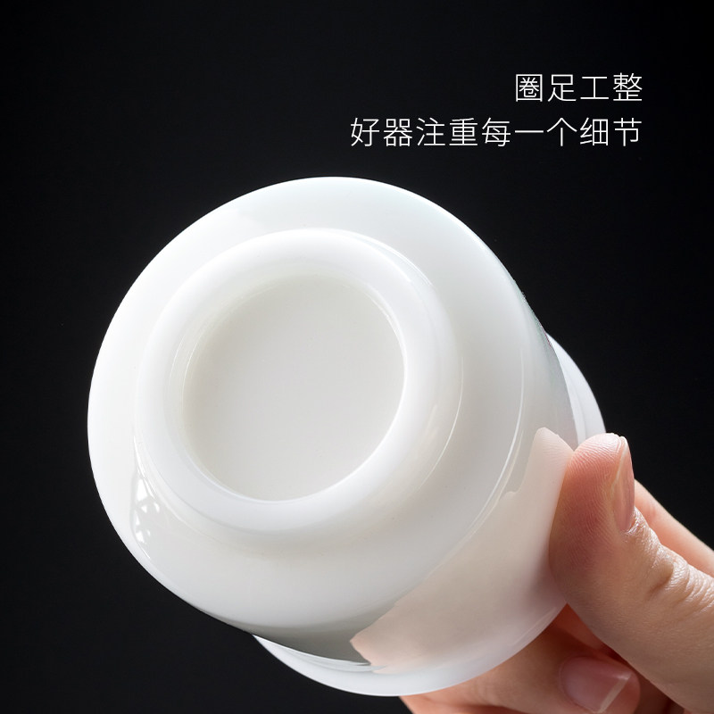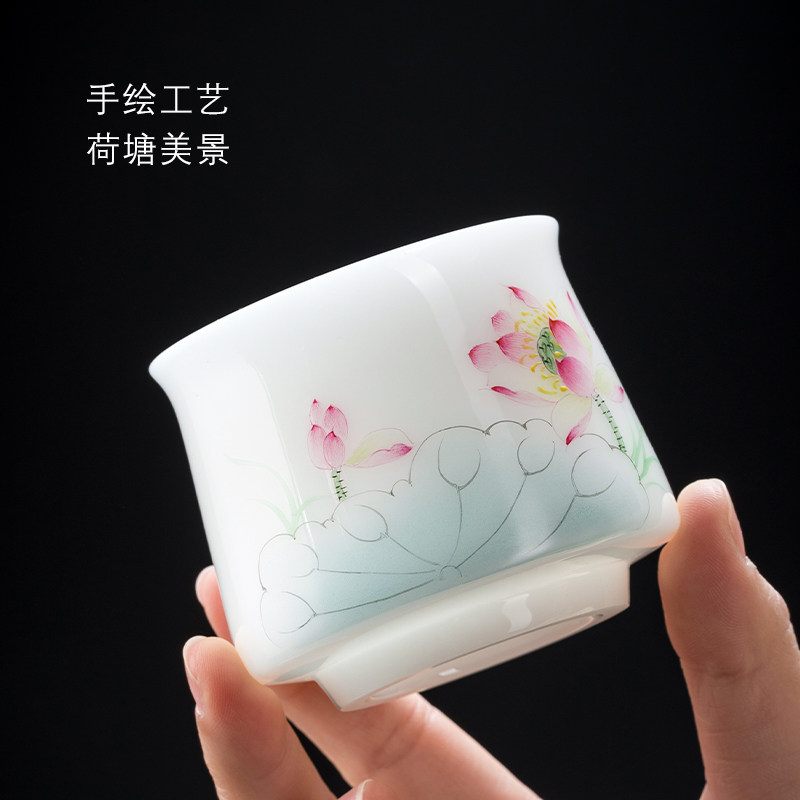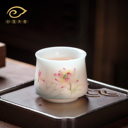 妙莲天香高档冰种玉瓷手绘主人杯茶杯个人专用陶瓷功夫茶具品茗杯