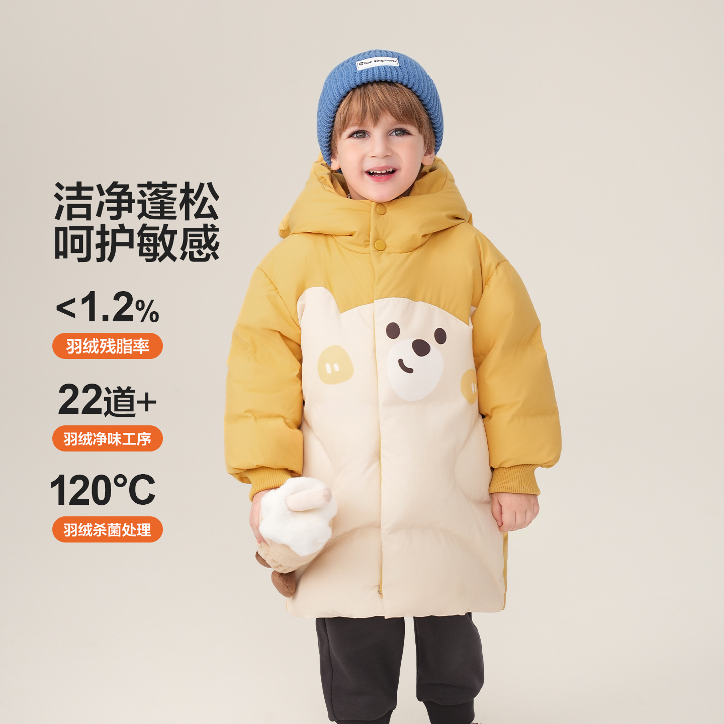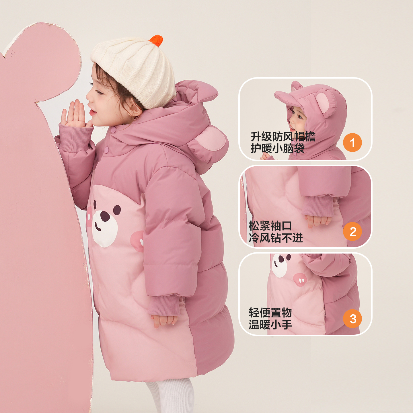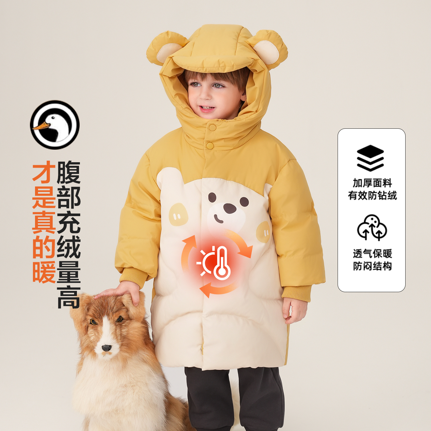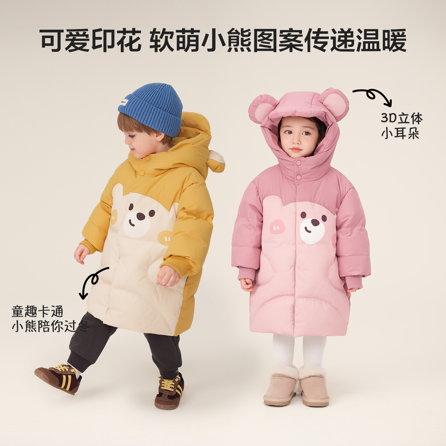 儿童冬季中长款羽绒服男童女童可爱卡通时尚连帽鸭绒外套2025新款