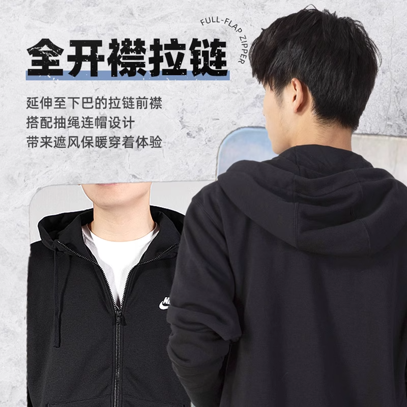 Nike耐克外套男2025秋季新款正品运动服夹克黑色休闲宽松连帽卫衣