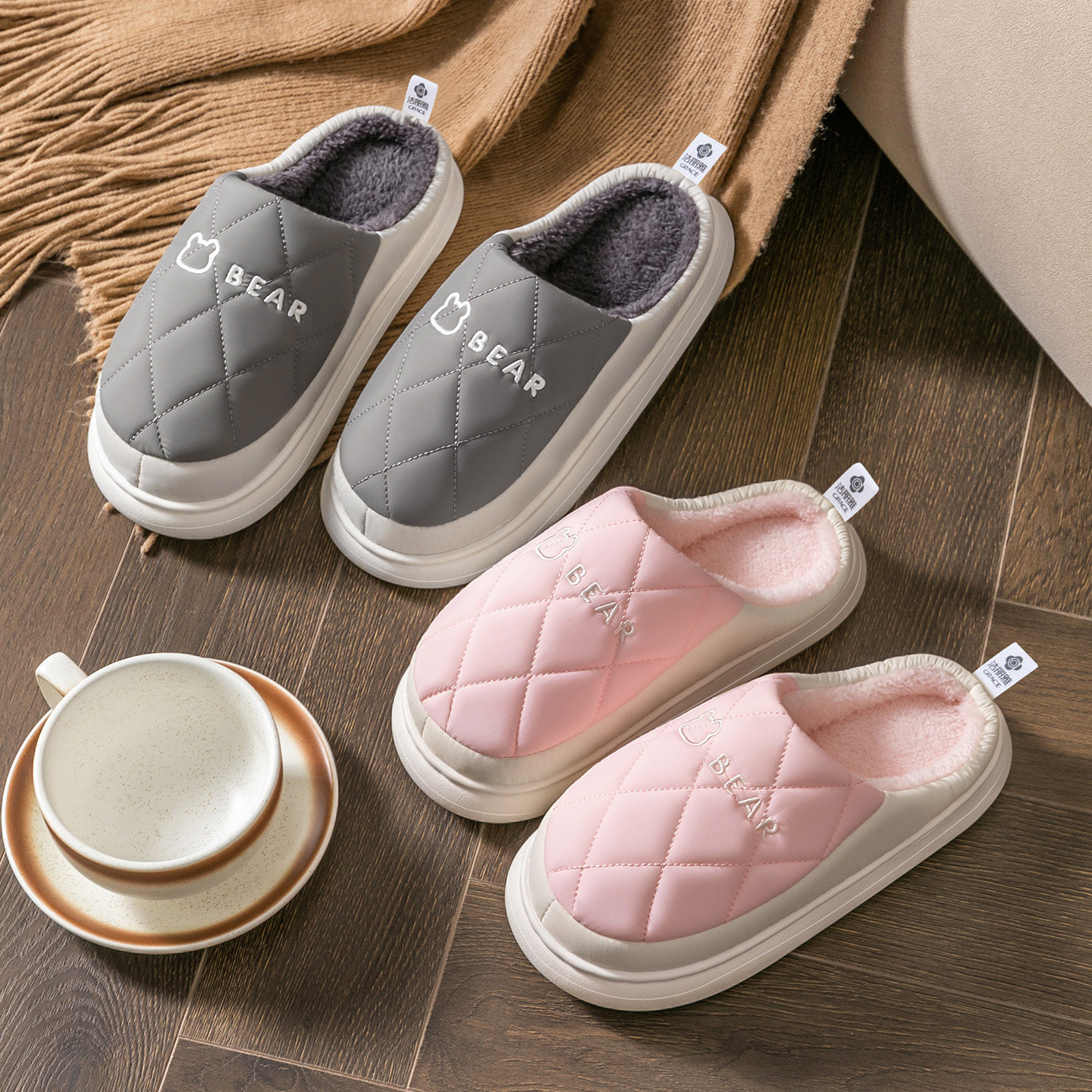 洁丽雅防水棉拖鞋男士冬蓄热毛绒