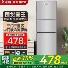 志高三门一级能效家用冰箱小型宿舍出租房用大容量三门三温电冰箱