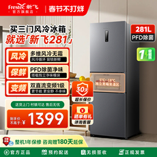 新飞281L三门冰箱风冷无霜一级能效家用节能冷藏冷冻三开门电冰箱