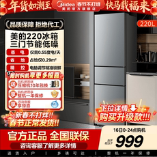 美的官方220L三门冰箱小型家用宿舍租房低噪冷冻冷藏节能冰箱