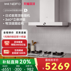 NEIFO/内芙 Q700大吸力烟灶套装欧式顶吸式白色抽油烟机灶具套装