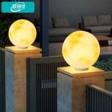 欧铭仕太阳能柱头灯月球灯户外庭院灯别墅圆球花园围墙灯月亮灯
