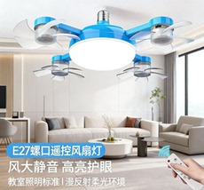 E27螺口四扇四轮吊扇灯静音蓝色高尚三挡风速遥控四头一体风扇灯