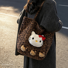 可爱少女KT猫包包2025新款时尚大容量通勤单肩包松弛感豹纹托特包