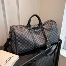 短途旅行包2024年新款女大容量男出差收纳袋轻便手提黑格子健身包