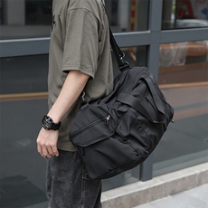 新款单肩包大容量防水耐磨背包商务包休闲男士斜挎包多口袋生意包