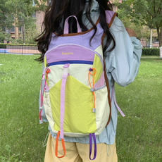双肩包女小众设计多巴胺拼色大容量背包户外徒步登山包骑行包男
