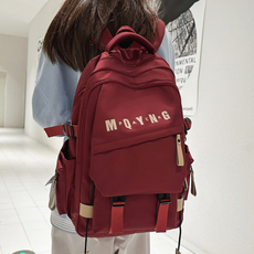 美式复古初中高中学生双肩包女生 纯色ins大容量书包旅行电脑背包