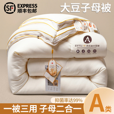 水星家纺全棉被子大豆纤维被春秋被二合一子母被抗菌冬被四季被芯