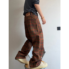 Entong复古美拉德咖色水洗牛仔裤男款休闲宽松直筒裤拼接工装裤子